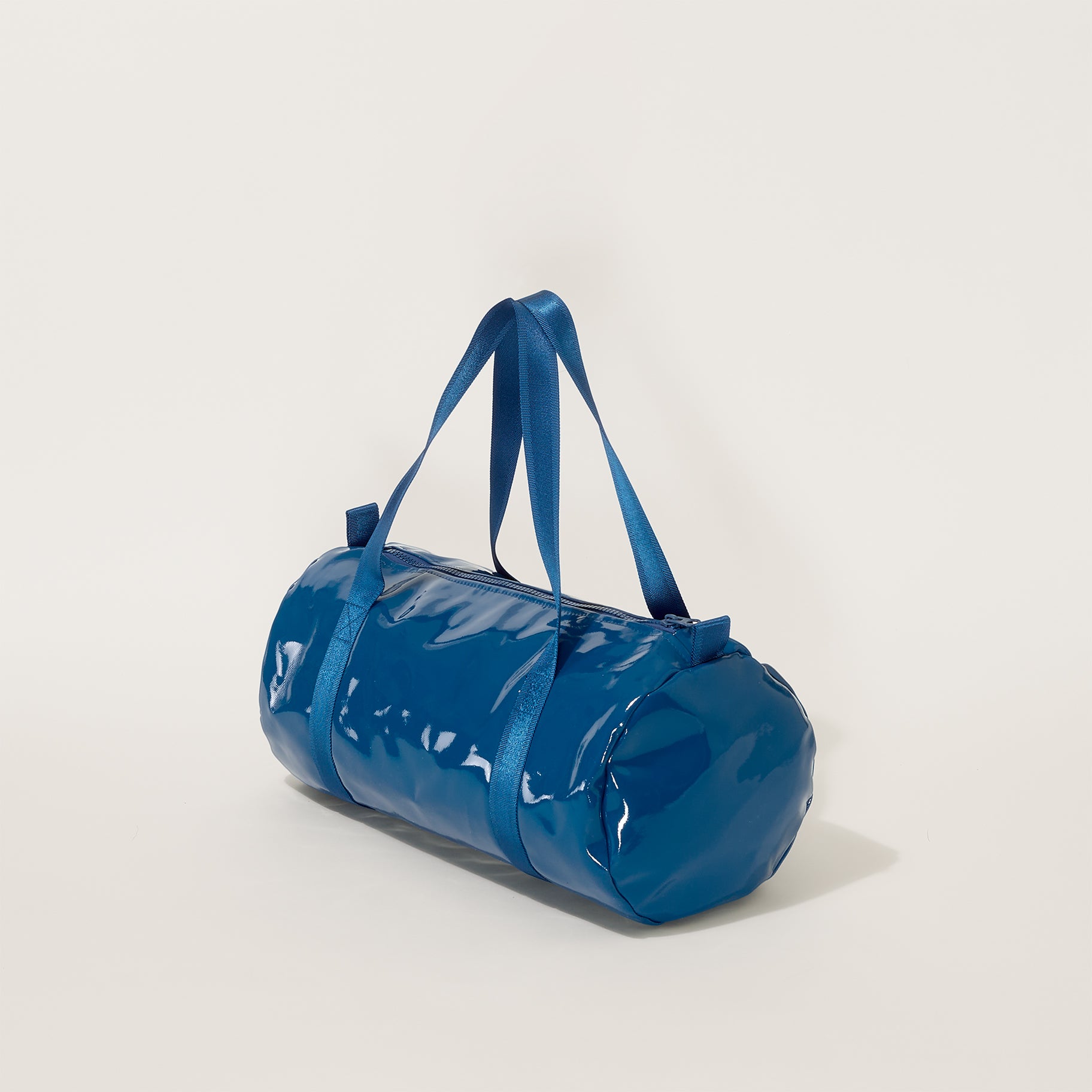 Blau ist die typische Farbe für hanseatische Zurückhaltung. Diese blaue Tasche mit den blauen Gurten ziemlich auffällig zurückhaltend. Die Oberfläche ist glatt und clean, innen zeigt sich der darunterliegende Denim. Der Stoff ist eine Innovation italienischer Stoffproduktion. Die Tasche hat Platz genug für Sportklamotten, Sportschuhe und Wasserflasche, und ist ausserdem ist der perfekte Begleiter für den Übernachtungsbesuch beim besten Freund.