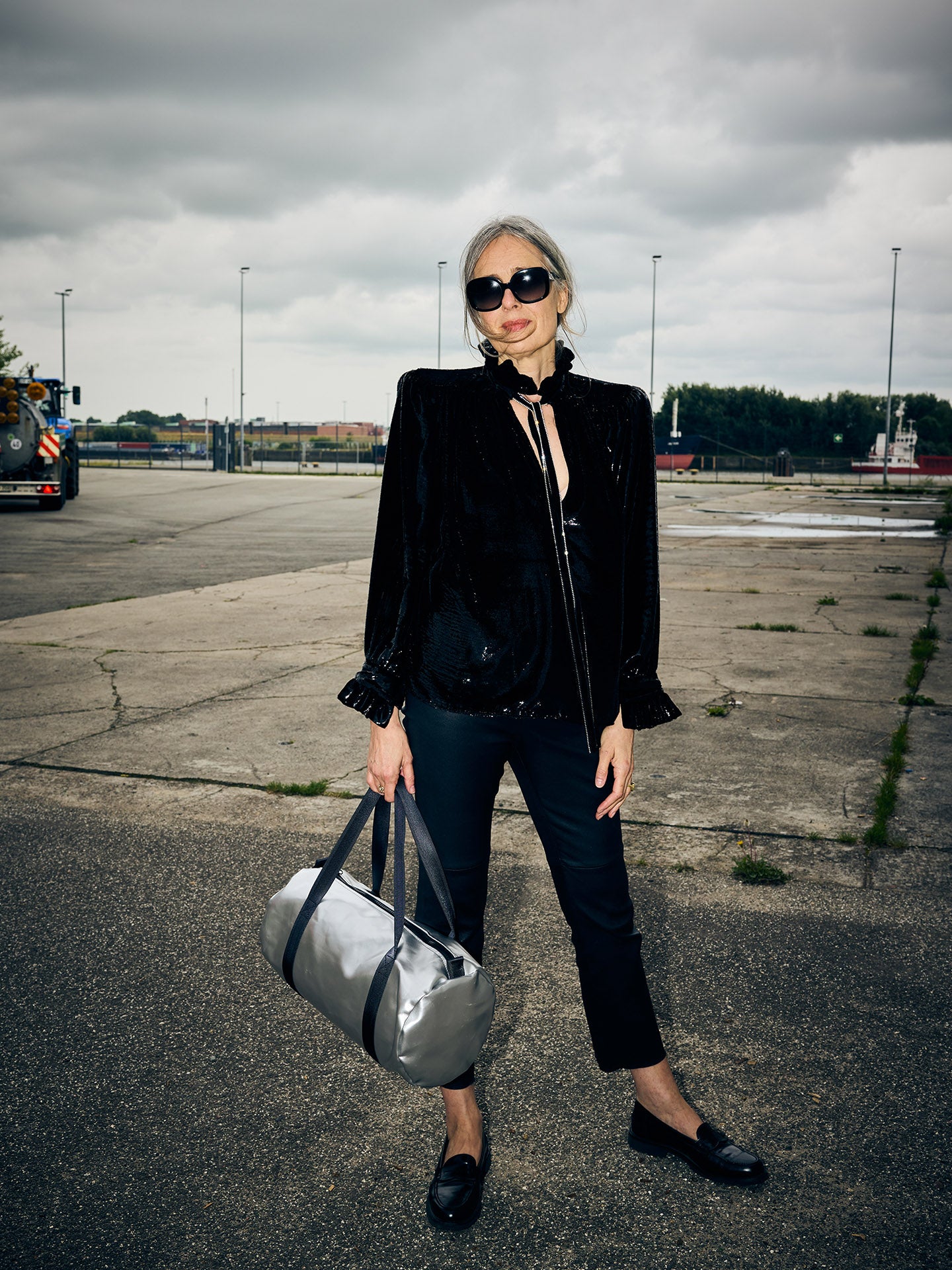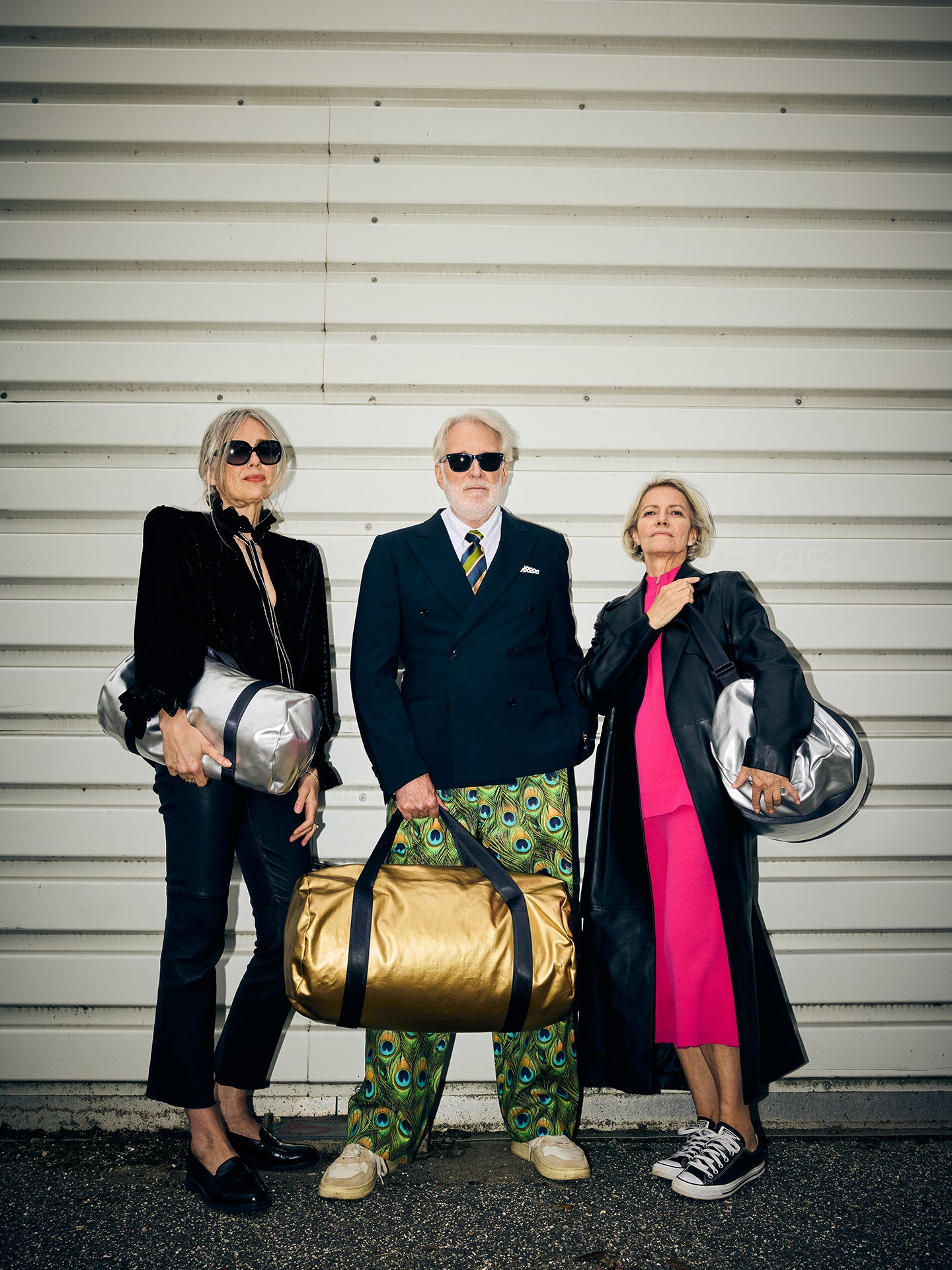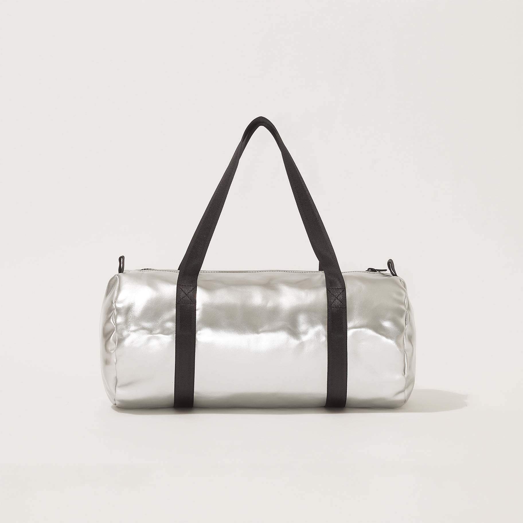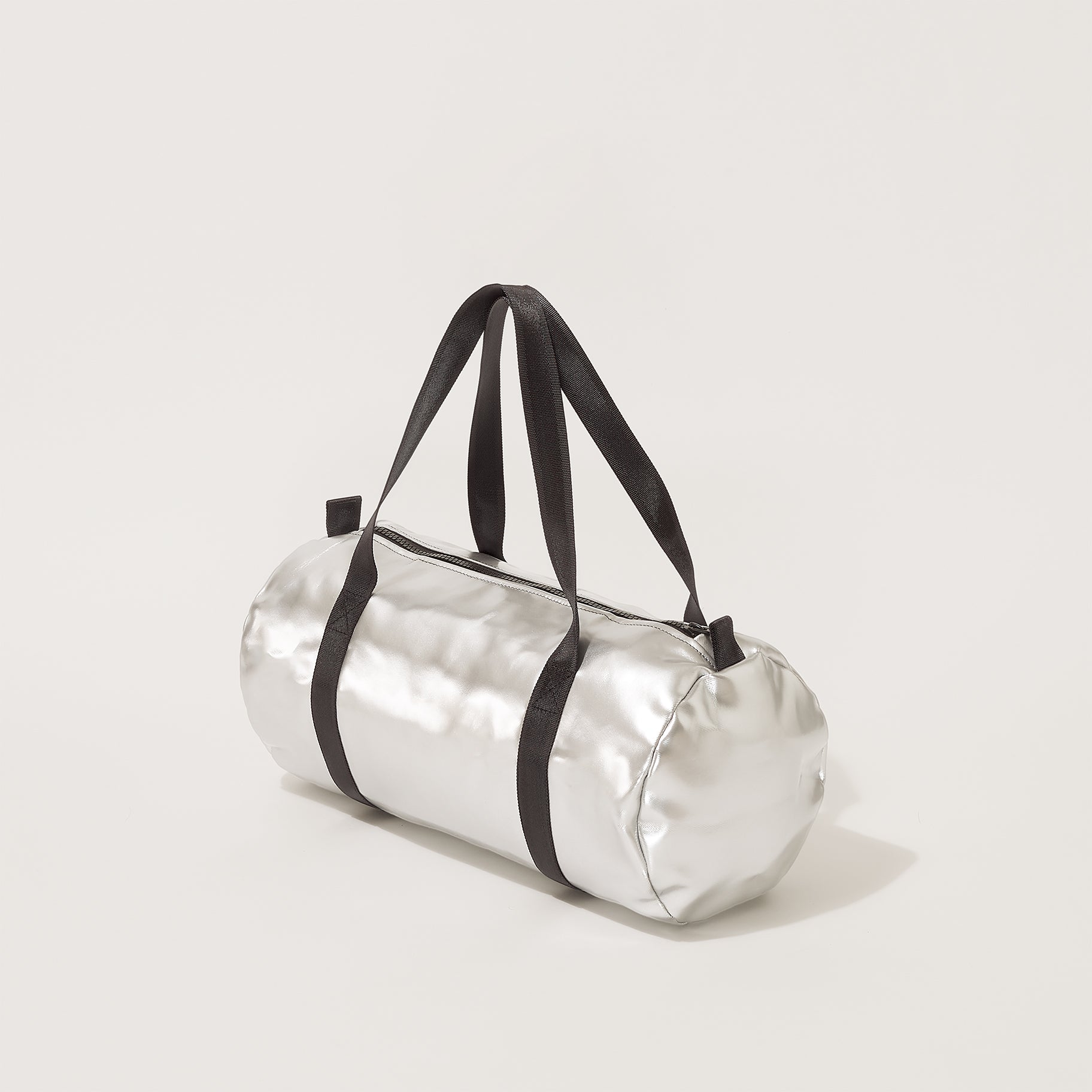 Ist silber das neue schwarz? Die silberne Tasche mit den schwarzen Gurten hat in jeden Fall das Zeug zum Klassiker. Die Oberfläche ist glatt und clean, innen zeigt sich der darunterliegende Denim. Der Stoff ist eine Innovation italienischer Stoffproduktion. Die Tasche hat Platz genug für Sportklamotten, Sportschuhe und Wasserflasche, und ist ausserdem ist der perfekte Begleiter für den Übernachtungsbesuch beim besten Freund.