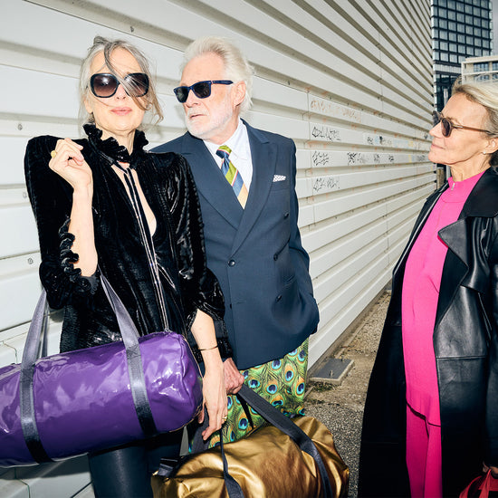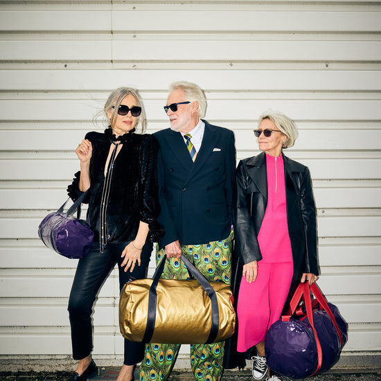 Ein sattes lila zeugt von royaler Würde. Mit der kleinen, schnellen Tasche kann man trotzdem über die Stränge schlagen. Die Oberfläche ist glatt und clean, innen zeigt sich der darunter liegende Denim. Der Stoff ist eine Innovation italienischer Stoffproduktion. Die Tasche hat Platz genug für Sportklamotten, Sportschuhe und Wasserflasche, und ist ausserdem ist der perfekte Begleiter für den Übernachtungsbesuch beim besten Freund. Mit dabei: Der Besty&Sons Schuhbeutel.