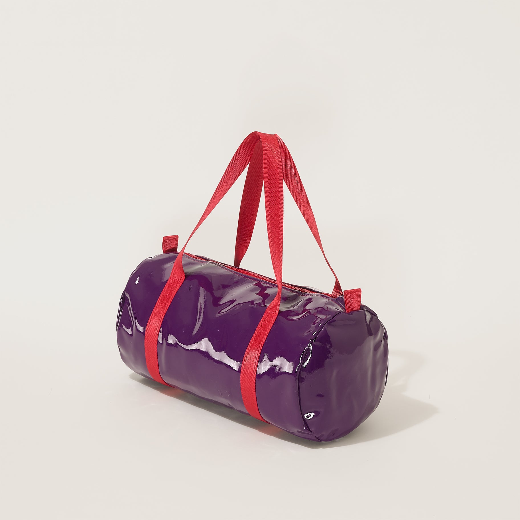 Lila mit rot: Was für eine Kombi! Lila ist die Farbe des Aufbruchs, das rot bringt die Geschwindigkeit. Wir sind gespannt wo das endet! Die Oberfläche der Tasche ist glatt und clean, innen zeigt sich der darunterliegende Denim. Der Stoff ist eine Innovation italienischer Stoffproduktion. Die Tasche hat Platz genug für Sportklamotten, Sportschuhe und Wasserflasche, und ist ausserdem ist der perfekte Begleiter für den Übernachtungsbesuch beim besten Freund. Vielleicht war es nicht der letzte.