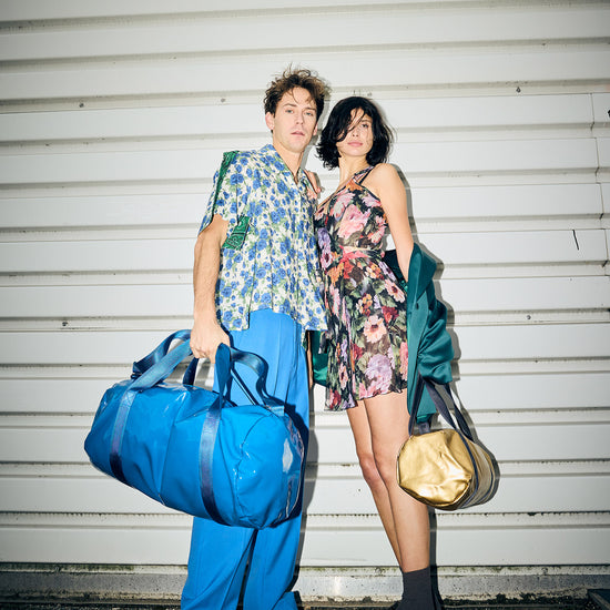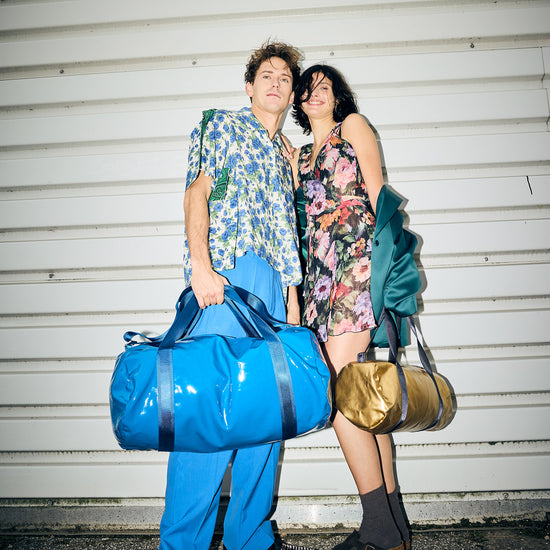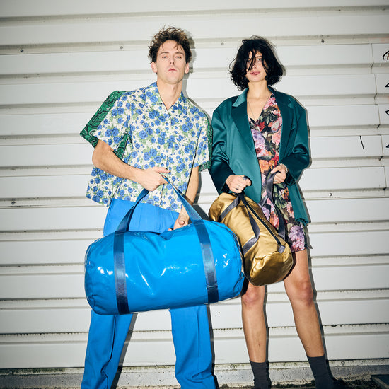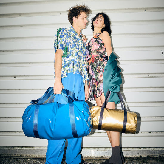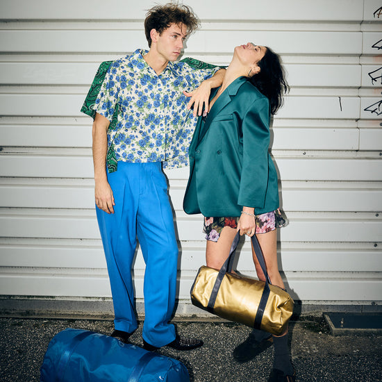 Also sagen wir mal so: Das Blau Blau dieses Weekenders ist genau das richtige für Menschen, die eigentlich dezent zurückhaltend sind und nur ein bisschen auffallen wollen. Die Tasche ist aussen glatt und clean, innen zeigt sich der feste Denim. Der beschichtete Stoff ist eine Innovation italienischer Stoffproduktion. Die Tasche hat ein Schuhfach und eine Seitentasche, es passt alles hinein, was man für ein Wochenende braucht, inklusive Sportschuhe und Lieblingsbuch. Mit dabei: Der Betsy&Sons Schuhbeutel.