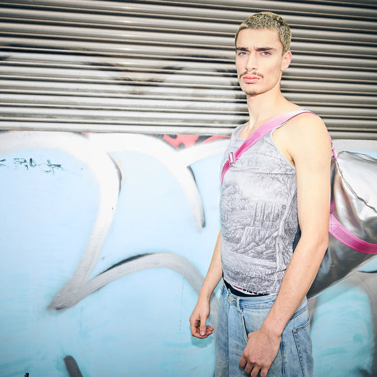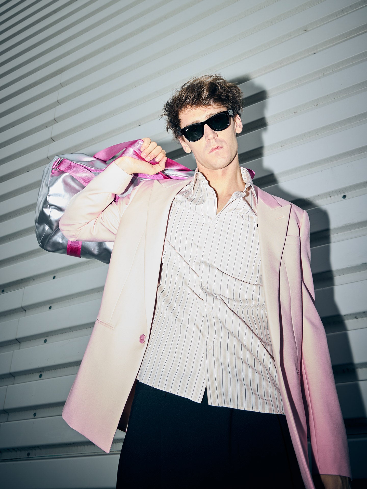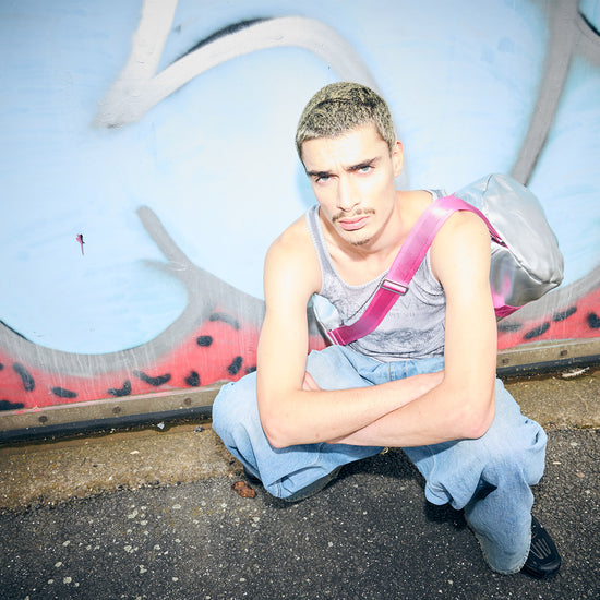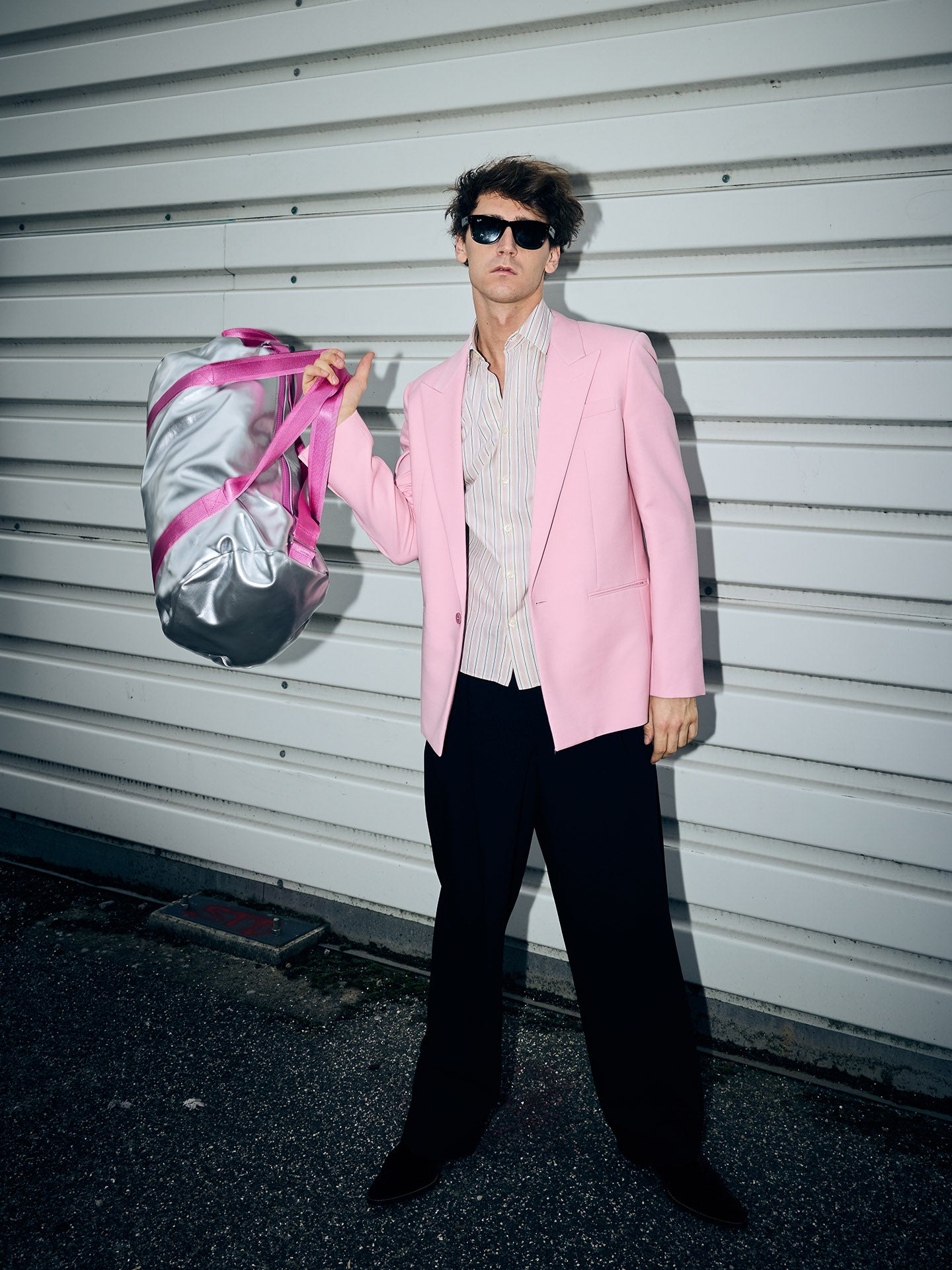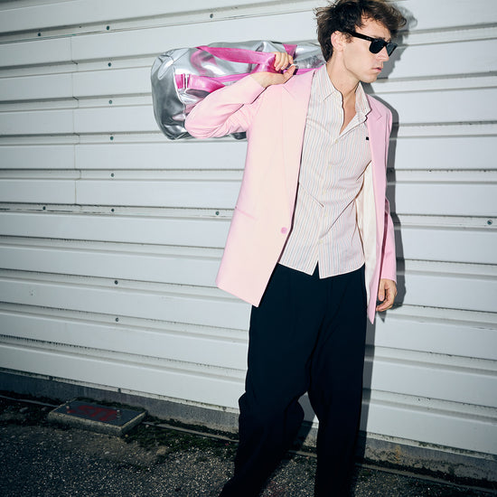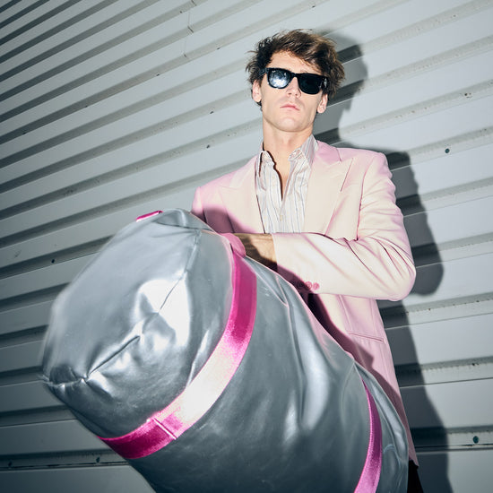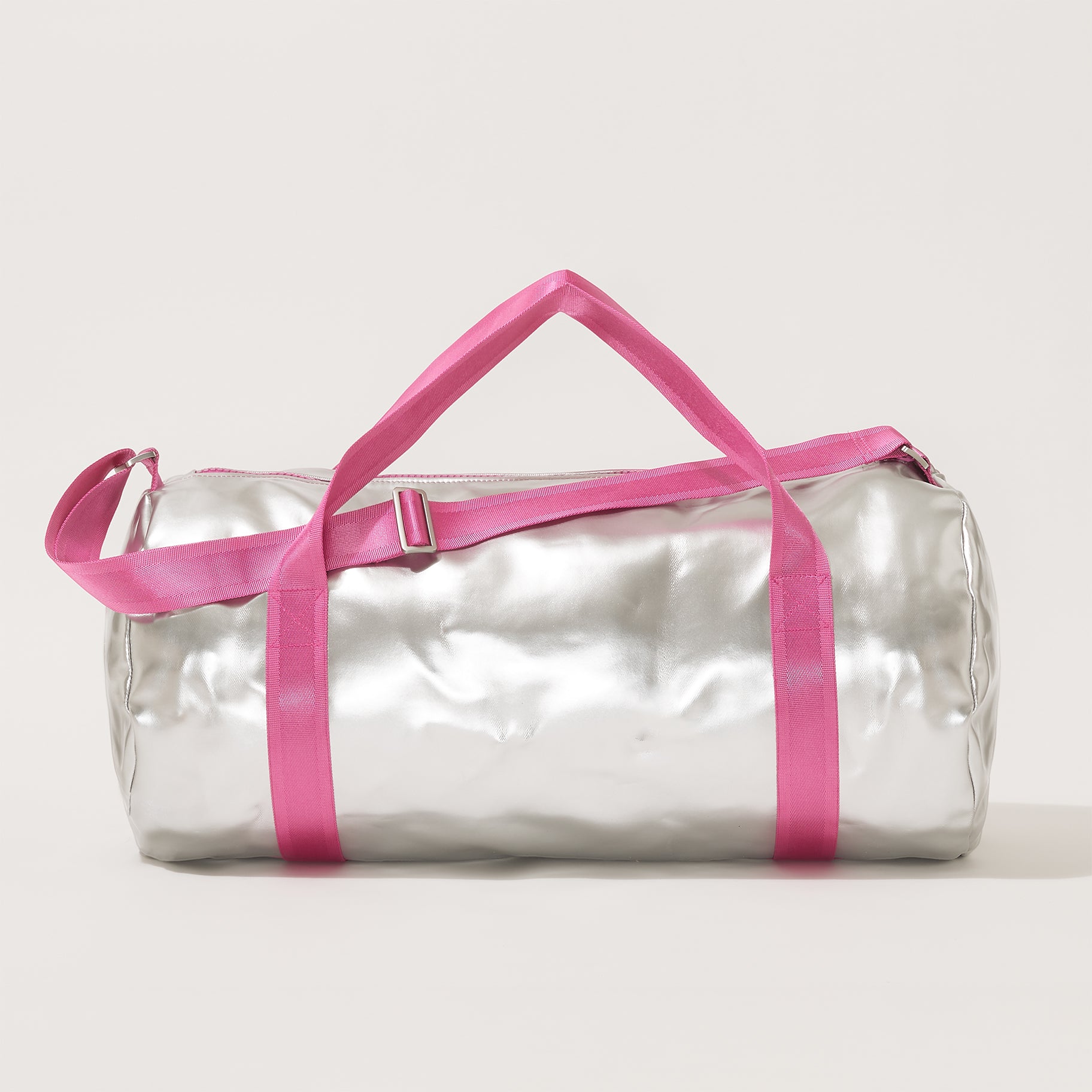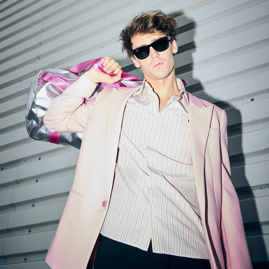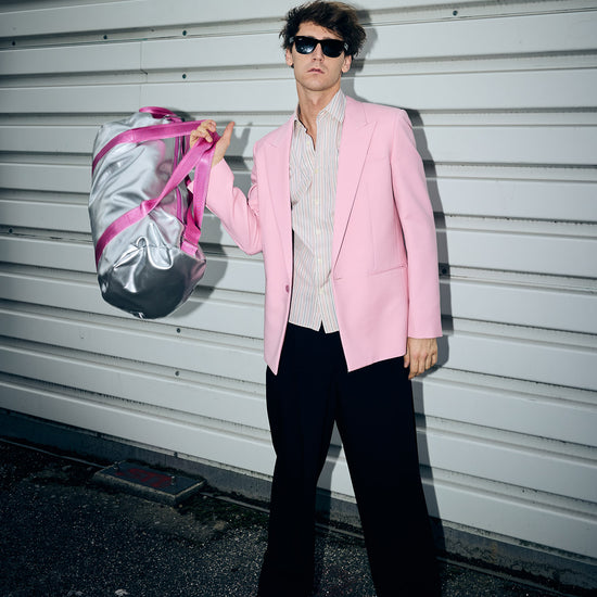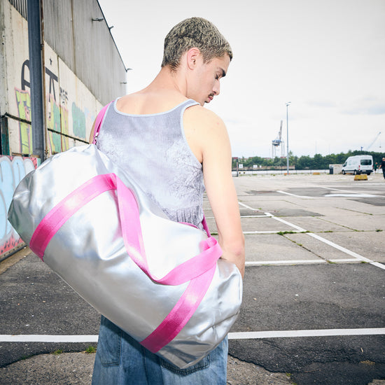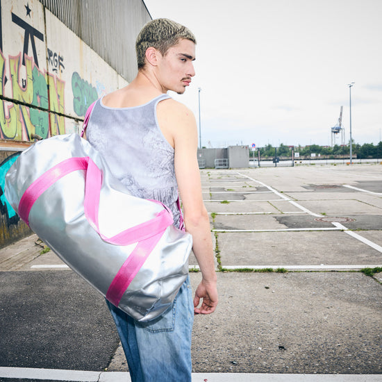 Pop as pop can: Der silberfarbene Weekender mit den rosa Gurten ist der gut gelaunte Begleiter für die Damen, bei Herren macht er sich mindestens genauso gut. Die Tasche ist aussen glatt und clean, innen zeigt sich der feste Denim. Der beschichtete Stoff ist eine Innovation italienischer Stoffproduktion. Die Tasche hat ein Schuhfach und eine Seitentasche, es passt alles hinein, was man für ein Wochenende braucht, inklusive Sportschuhe und Lieblingsbuch. Mit dabei: Der B&S Schubeutel.